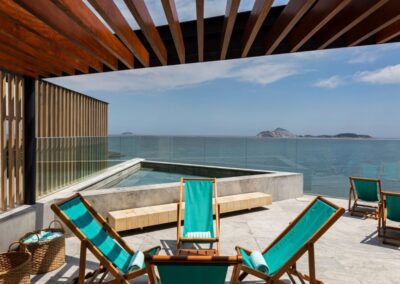 Entièrement rénové, l’hôtel de 49 chambres adopte une esthétique contemporaine inspirée du littoral brésilien : lignes épurées, matières naturelles, tons marins et lumière généreuse. L’ambiance nautique et minimaliste crée une sensation de refuge intime au cœur de la ville, tout en restant profondément connecté à l’esprit du Rio balnéaire.