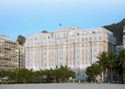 Avec sa façade blanche majestueuse et son style art déco, le Copacabana Palace fait partie du patrimoine carioca. Depuis plus d’un siècle, il accueille célébrités, chefs d’État et voyageurs du monde entier. Son ambiance raffinée, entre charme d’époque et sophistication moderne, en fait un lieu unique où le prestige et la légèreté du lifestyle carioca se rencontrent.