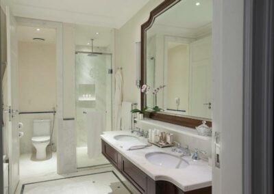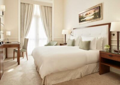 L’hôtel propose près de 240 chambres et suites, réparties entre le bâtiment principal et l’aile annexe.