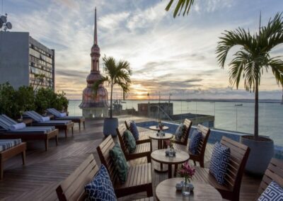 Son rooftop, l’un des plus prisés de Salvador, offre une piscine à débordement spectaculaire avec vue panoramique sur la baie. Entre culture, sophistication et confort absolu, le Fera Palace Hotel incarne l’équilibre parfait entre histoire et modernité.