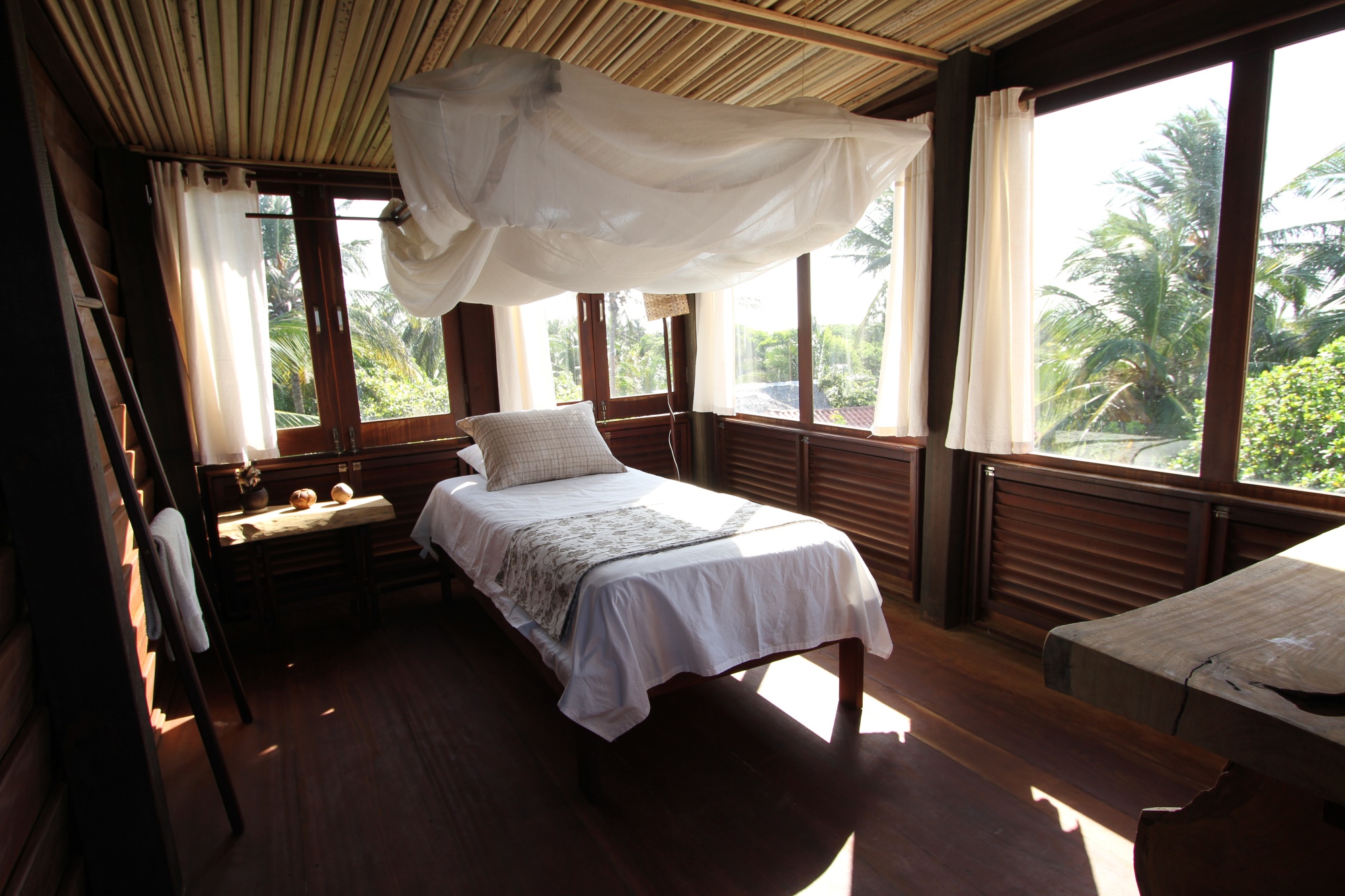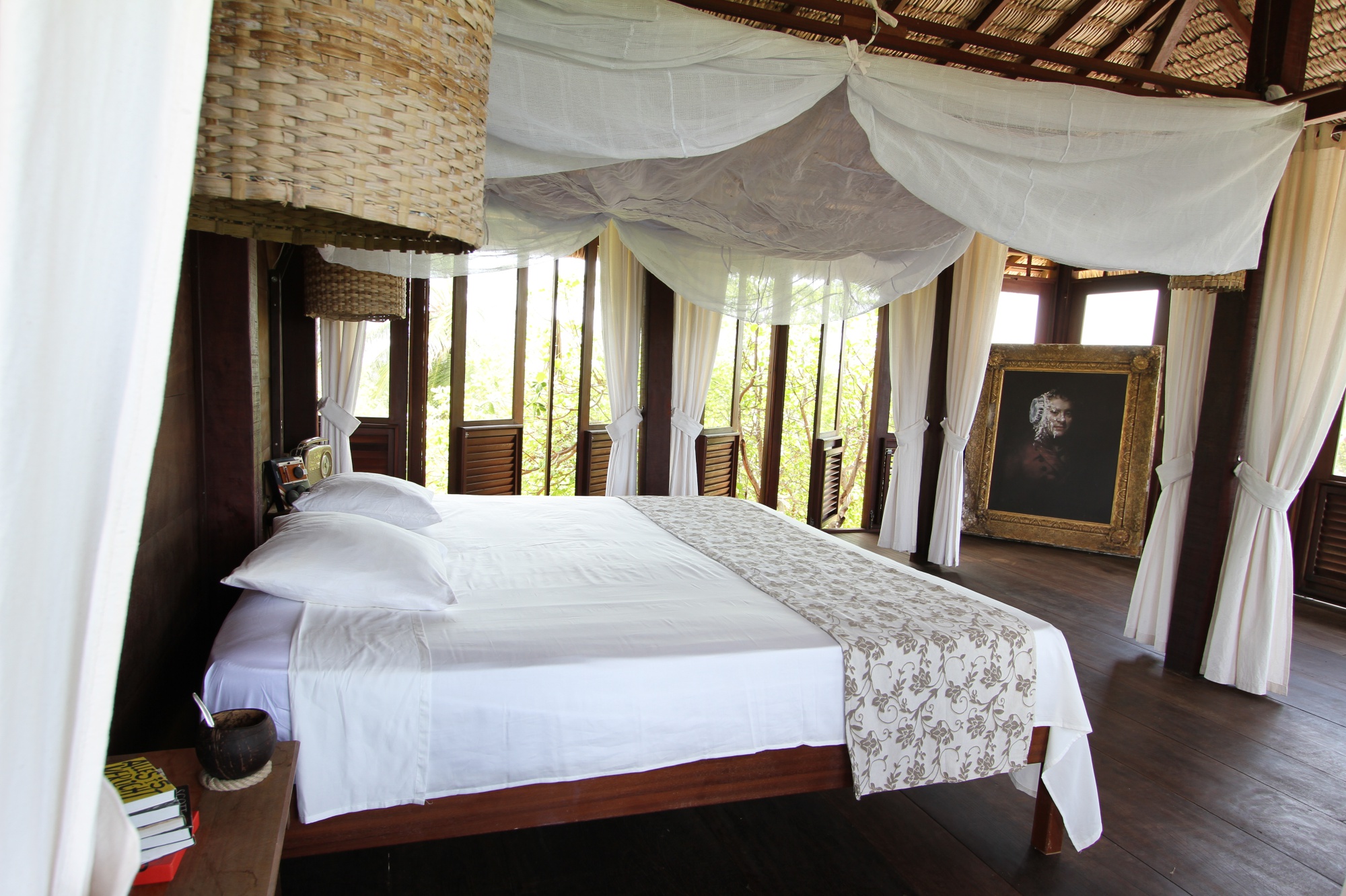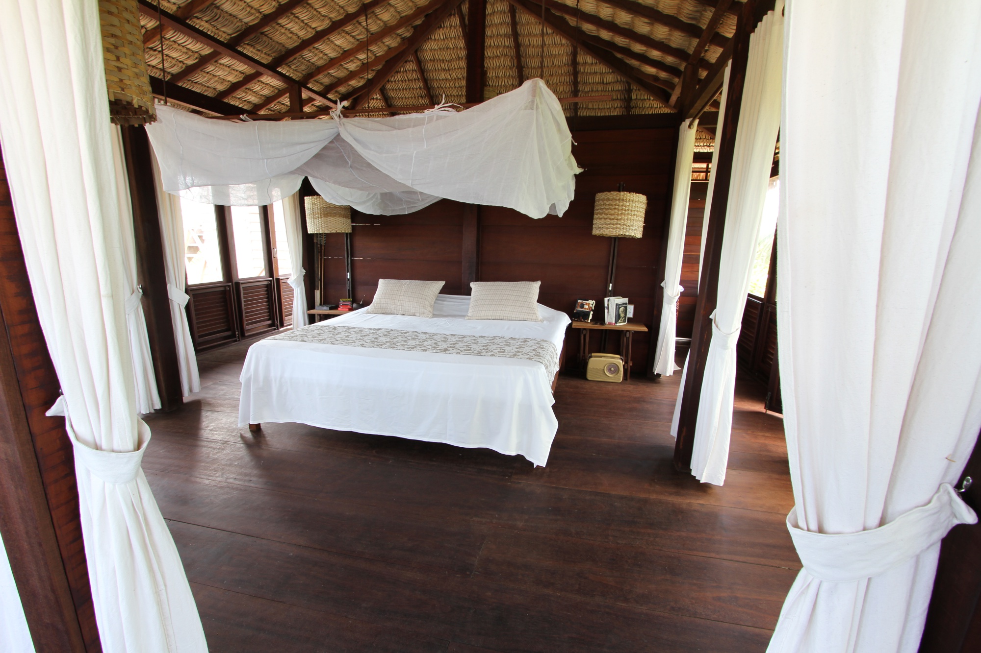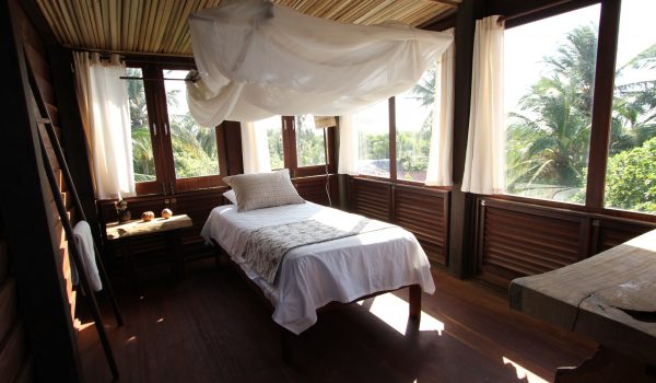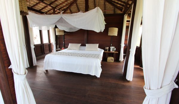Située à Atins, un village de pêcheurs coincé entre la mer, le fleuve Preguiças et les magnifiques dunes du Parc national des Lençois Maranhenses, la Ferme de Georges est un hébergement improbable dans un lieu insolite. Construits sur un terrain vallonné et arboré de deux hectares, les neuf chalets sont fabriqués à partir de matériaux traditionnels de la région. Ils sont naturellement ventilés (pas de climatiseur) et séparés par de grands espaces de verdure. Le “Chalet des Arbres” dispose d’une très grande terrasse qui surplombe les arbres, de trois chambres et d’une tour depuis laquelle vous pouvez admirer la plage et les premières dunes du Parc. La Ferme de Georges dispose également d´une piscine et d´un excellent restaurant alimenté quotidiennent par les produits frais du potager bio de la propriété. La bonté de la nature est au cœur du concept de La Ferme de Georges.