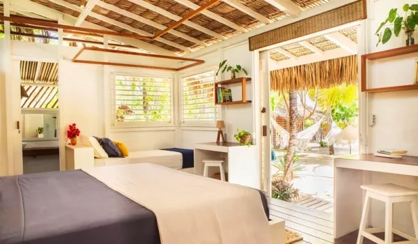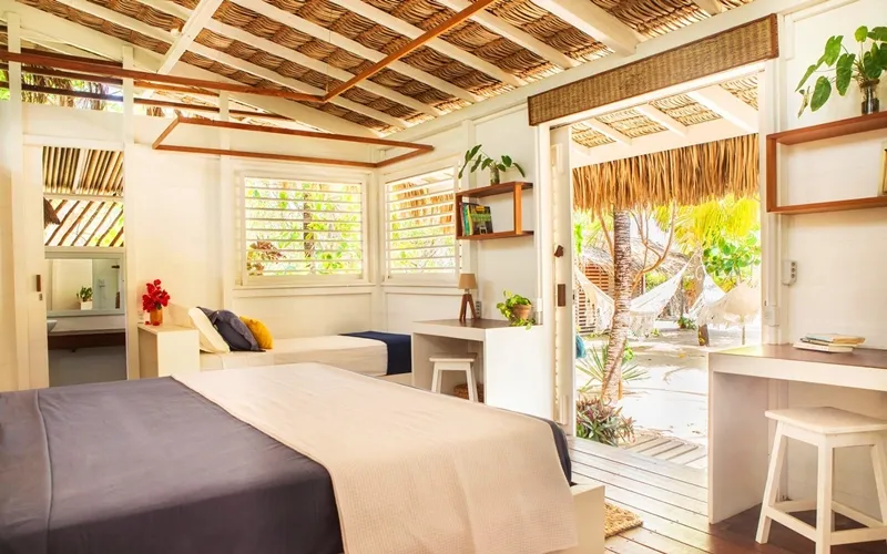 Le village d’Atins est un véritable paradis pour les amateurs de kitesurf ainsi que pour tous ceux qui souhaitent explorer le Parc national des Lençóis Maranhenses sans renoncer au confort. Chaque année, de nouvelles pousadas de charme et de petits restaurants séduisants y voient le jour, renforçant encore l’atmosphère unique du lieu. Parmi les meilleures options d’hébergement, la Pousada Muita Paz se distingue particulièrement. Située face à la mer, elle propose 7 bungalows tout confort, harmonieusement répartis sous les cocotiers. Leur décoration, soignée et pleine de charme, crée une ambiance à la fois chaleureuse, élégante et parfaitement intégrée au cadre naturel exceptionnel d’Atins.