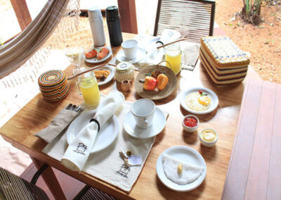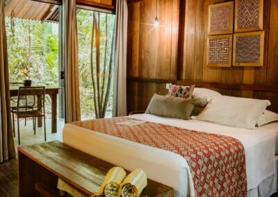 La pousada s’inspire du mode de vie des communautés locales, offrant une expérience sincère et chaleureuse de l’Amazonie. Elle dispose de 6 bangalôs élégants, construits en bois issu de reforestation, alliant confort moderne et esthétique amazônienne.